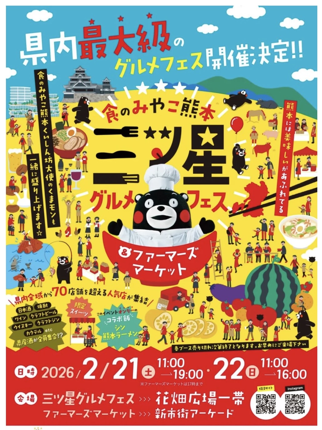 食の都 三つ星グルメフェス&ファーマーズマーケット 2月21日と22日の2日間、熊本最大級のグルメイベント「食のみやこ熊本 三つ星グルメフェス&ファーマーズマーケット」に出店いたし…